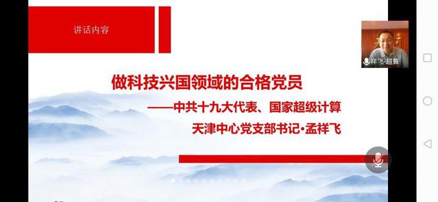 校友党员,十九大代表,五四青年奖章获得者,国家超级计算天津中心党支部书记孟祥飞,为全体师生党员带来了题为“做科技兴国领域的合格党员”的报告。谈到自身工作经历时,他嘱托同学们坚定理想信念,要用一生诠释共产党员的初心和使命;谈到科技抗“疫”时,他强调共产党员要有强国精神和奋斗力量,特别是党员科技工作者更加要在祖国需要的时候挺身而出,主动担当科技强国的责任 。