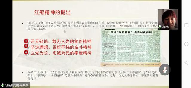 学院党委书记史永红为全体参会党员做了题为“红船精神与中国共产党的初心和使命——庆祝中国共产党成立99周年”的报告。她分别从为什么要弘扬红船精神,红船精神中蕴含的初心使命以及怎样弘扬红船精神勇担时代使命三方面并结合中国抗疫故事展开生动而丰富的讲解。她寄语全体预备党员,明年是建党100周年,要以红船精神为指引,将学习的具体目标同民族复兴的宏伟目标结合起来,为两个一百年的奋斗目标做出自己的贡献。