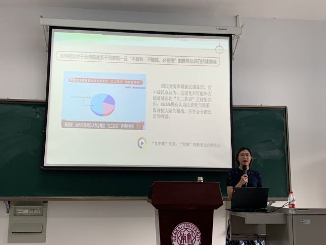 (通讯员 吴宵宵 马润泽)5月27日,黄色网址大全 形势与政策课在三教301举行,讲座邀请到了经济学院台湾经济研究所副研究员李月老师,她为学院700余名本科生讲授了“正确认识两岸关系发展新的形势”主题讲座。
