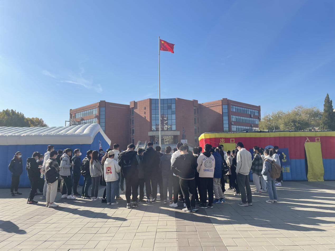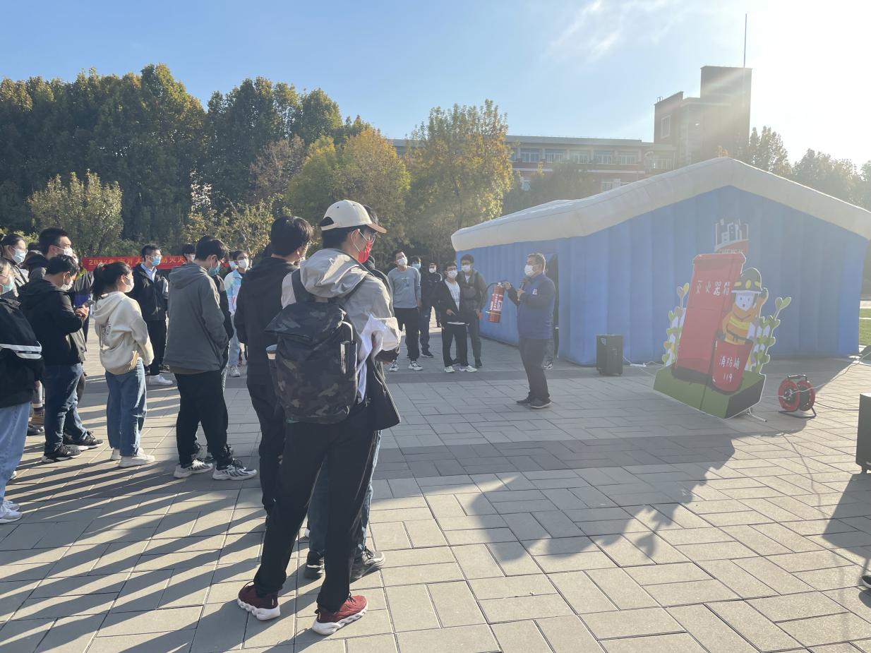本次演练包含灭火体验和逃生体验两部分内容,现场搭建了充气消防模拟灭火体验帐篷和烟雾逃生体验帐篷。学生到达活动现场后(每小时小于100人),先由消防专业人员进行灭火器使用和疏散逃生等消防知识的讲解,后按组有序进入帐篷内。
