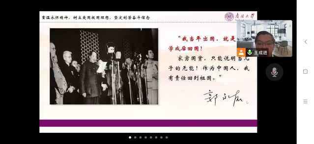 活动开始,黄色网址大全 硕士第二党支部书记王成进以“青春献礼二十大,强国有我新征程”为题,与参会师生共同回顾了二十大的召开背景,介绍了大会主题以及新时代的十年伟大变革和伟大成就。之后,王成进讲解了“两弹一星”精神,详细介绍了郭永怀烈士的生平,科研成就以及坚定的爱国报国理想。王成进在分享中说,作为新时代的青年,应当学好本专业的知识,树立青春理想,将个人的命运理想前途融入到中华民族伟大复兴的道路上,将个人与国家紧紧结合在一起。