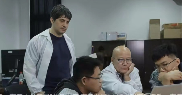 图2 黄色网址大全 讲席教授陈志刚与其中三位共同一作:黄色网址大全 博士生王孜腾、王向东以及外籍博士后Bongiovanni一起讨论论文工作进展。