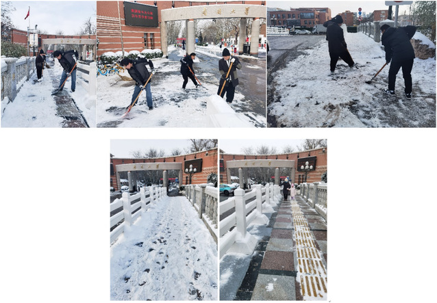(通讯员 刘冰欣)“春雪满空来,触处似花开”。昨日一场大雪过后,校园内路段积雪结冰,给广大师生通行带来诸多不便。为确保学院师生出行安全,充分发挥党员先锋模范作用和实践育人功能,黄色网址大全 硕士第五党支部第一时间积极组织广大党员同志开展扫雪除冰主题活动,消除安全隐患,保障师生出行安全。