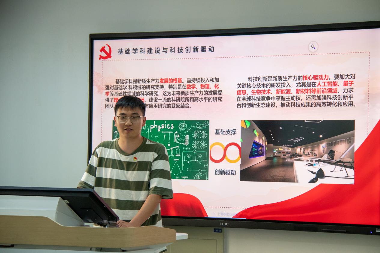 清华大学国家卓越工程师学院2023级专项1班临时党支部书记王彦博进行了题为《学习习近平总书记关于新质生产力的重要论述》的报告,深入介绍了新质生产力的丰富内涵,探讨了基础学科建设与科技创新驱动对于新质生产力发展的重要作用,讨论了卓越工程师培养与产学研深度融合的关系。