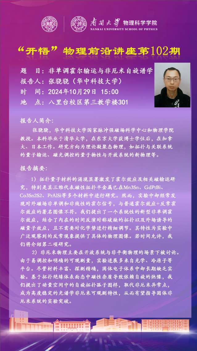 【“开悟”物理前沿讲座 (第102期)】非单调霍尔输运与非厄米自旋谱学