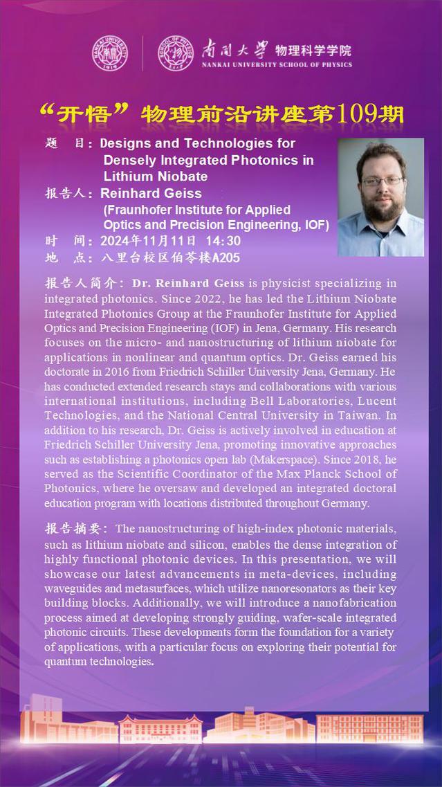 【“开悟” 物理前沿讲座 (第109期)】Designs and Technologies for Densely Integrated Photonics in Lithium Niobate