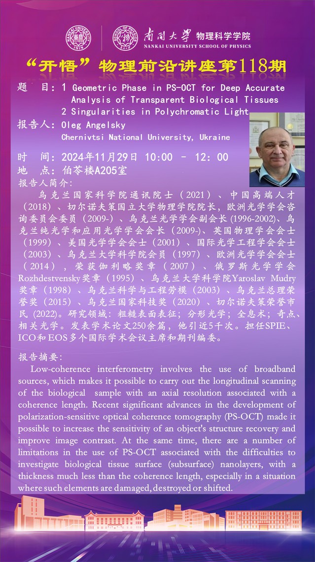 【“开悟”物理前沿讲座 (第118期)】Geometric Phase in PS-OCT for Deep Accurate Analysis of Transparent Biological Tissues