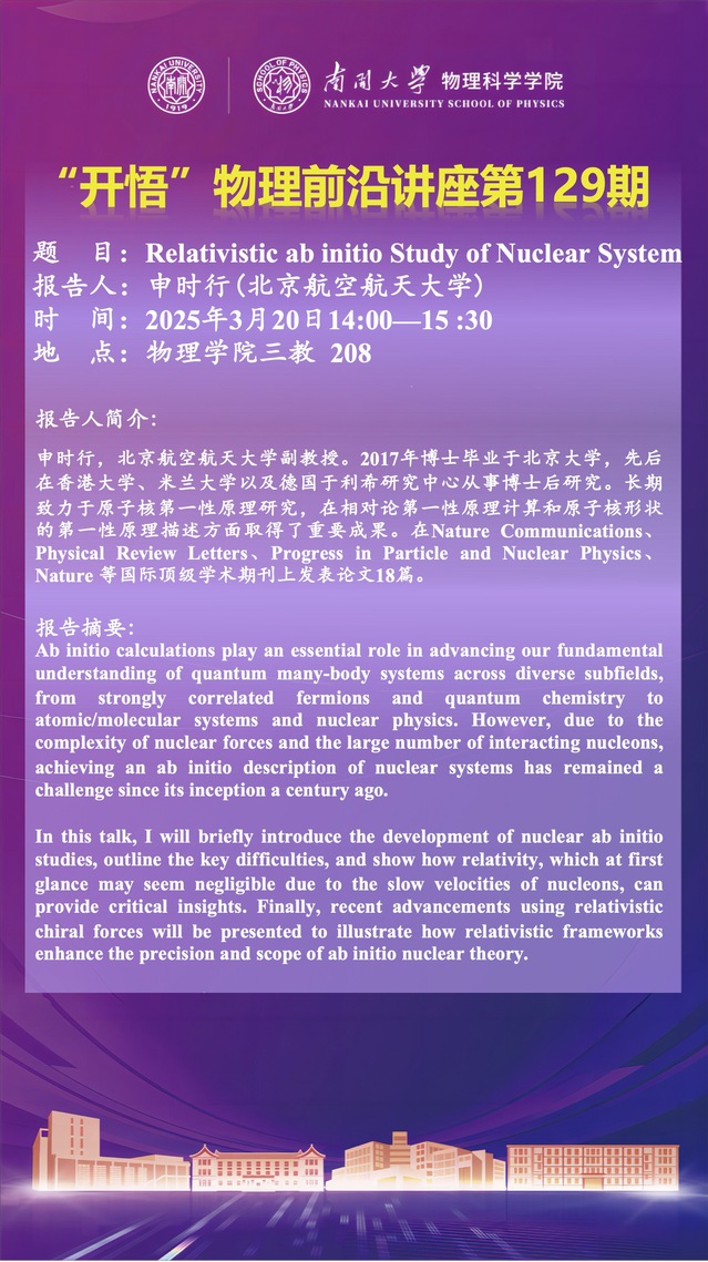 【“开悟” 物理前沿讲座 (第129期)】Relativistic ab initio Study of Nuclear System