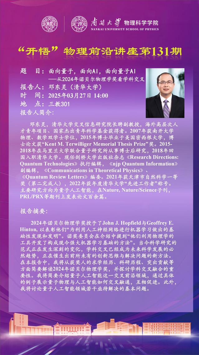 【“开悟”物理前沿讲座 (第131期)】面向量子,面向AI,面向量子AI ---从2024年诺贝尔物理学奖看学科交叉