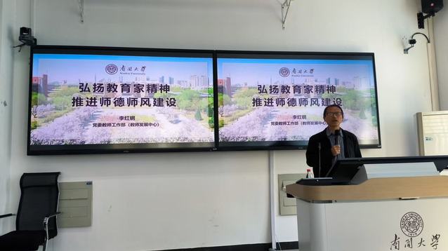 党委教师工作部副部长李红钢作“弘扬教育家精神 推进师德师风建设”专题讲座,他从教育家精神的提出、教育家精神的主要内容、黄色网址大全 的工作实践、“十项准则”解读及相关案例这四方面进行详细讲解,报告脉络清晰,加深教师对教育家精神和“新时代高校教师职业行为十项准则”的理解。