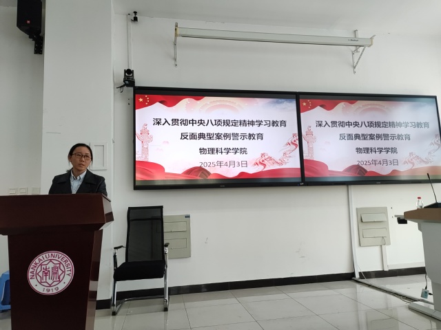 副院长邢翠开展违反中央八项规定精神反面典型案例警示教育,并就学院科研经费使用自查自纠工作进行部署说明。