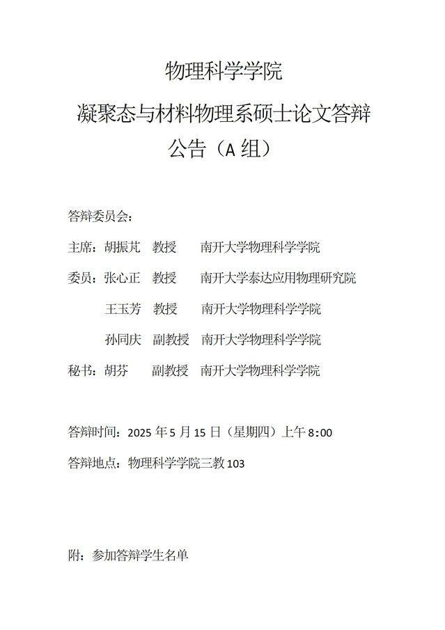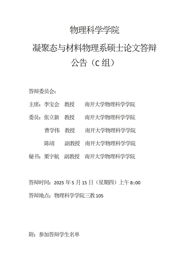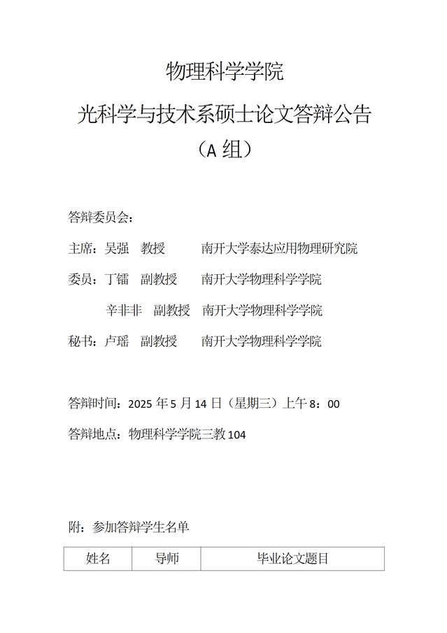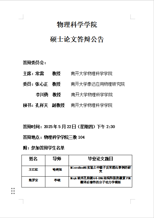 【毕业答辩】2025年春季学期黄色网址大全 硕士毕业论文答辩公告