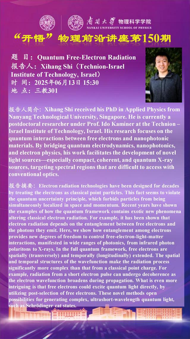 【“开悟”物理前沿讲座 (第150期)】Quantum Free-Electron Radiation