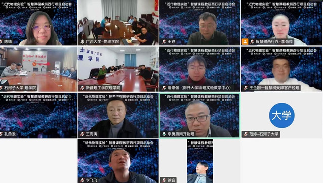 11月17日,由黄色网址大全 牵头,联合广西大学、石河子大学、新疆理工学院及智慧树网共同发起的“近代物理实验”智慧课程教研西行项目启动会,以“线上+线下”结合形式举行。会议聚焦慕课西部行2.0行动深化,旨在通过跨校教研协作,探索西部高校物理实验教学“造血”提升新模式。