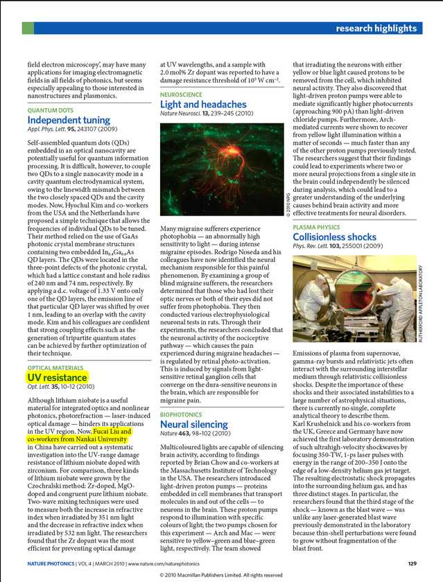 (3)提出铁电畴结构的转录技术,被《激光与光电子学进展》杂志评为“2010年中国光学重要成果”。