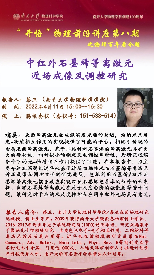 Kaiwu Lecture 8: 中红外石墨烯等离激元近场成像及调控研究