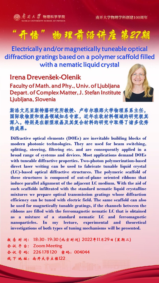 Kaiwu Lecture 27: Electrically and/or magnetically tuneable optical diffraction gratings based on a polymer scaffold filled with a nematic liquid crystal