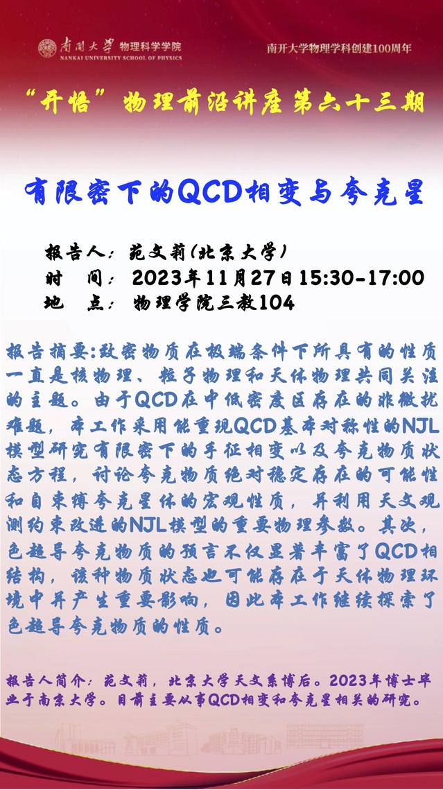 Kaiwu Lecture 63: QCD phase transition and quark stars under finite density